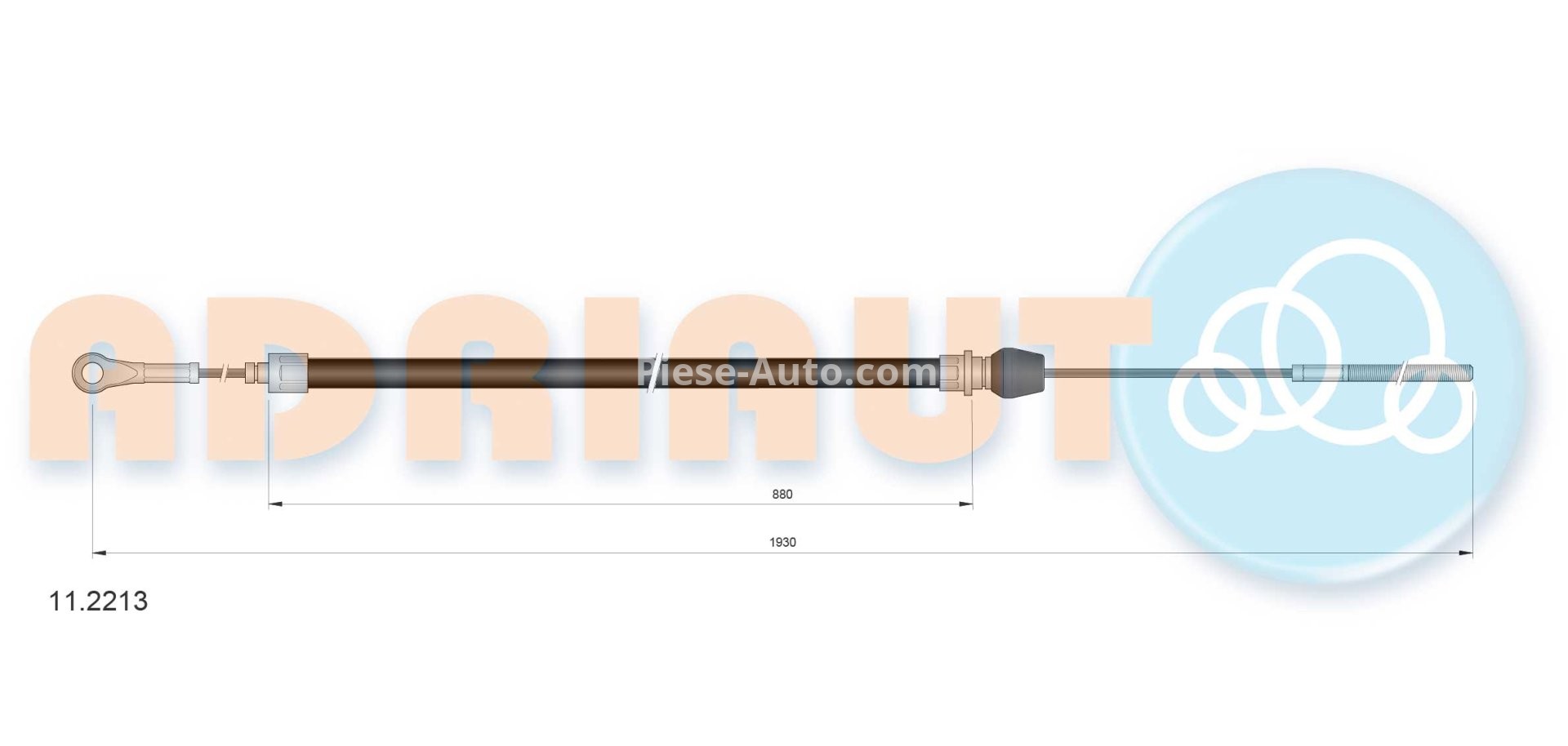 Cablu frână de mână ADRIAUTO, față,/mijloc (1930mm /880mm) pentru: IVECO DAILY II 2.5D/2.8D 01.89-05.99
