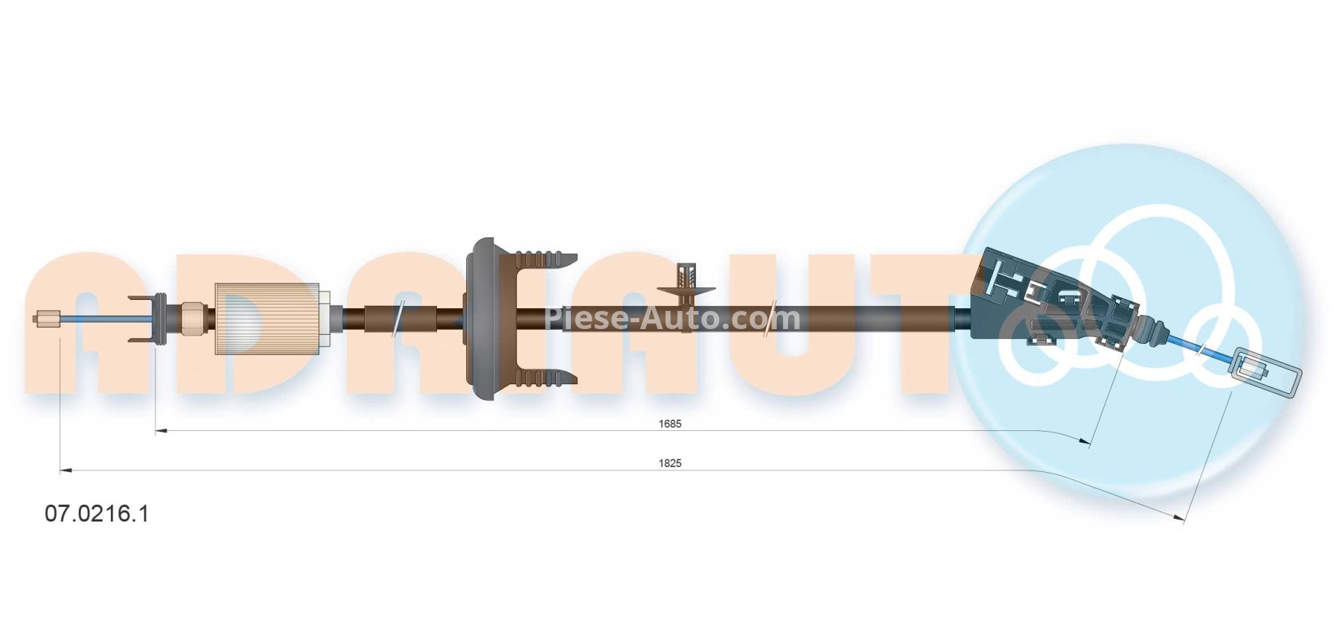 Cablu frână de mână ADRIAUTO, mijloc (1850mm /1685mm) pentru: CITROEN C4 GRAND PICASSO I, C4 PICASSO I 1.6-2.0D 10.06-12.13