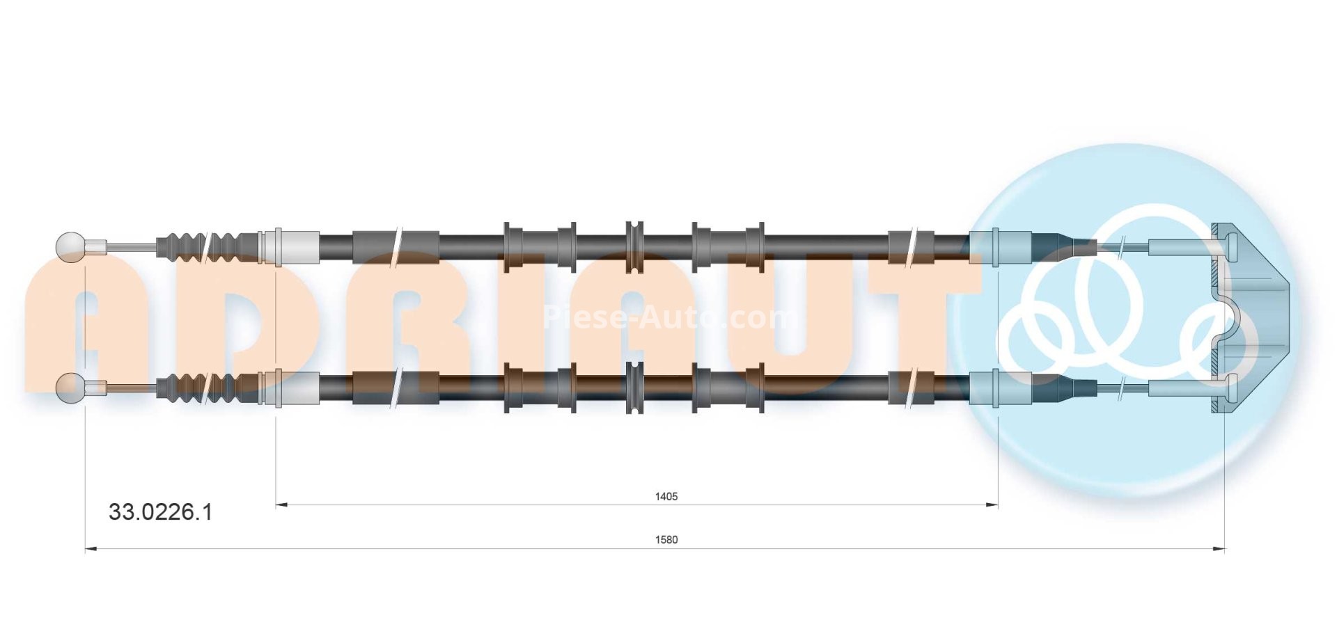 Cablu frână de mână ADRIAUTO, mijloc/spate, dreapta / stânga (1580mm /1405mm /1580mm /1405mm) pentru: OPEL COMBO TOUR, COMBO/MINIVAN 1.3D-1.7D 10.01-