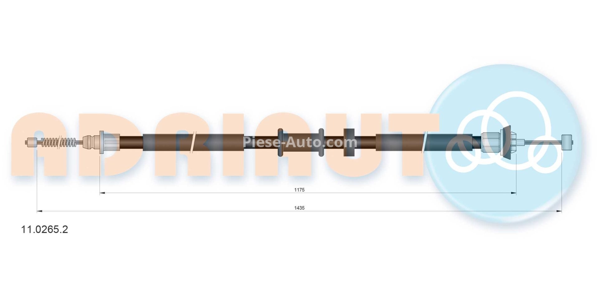 Cablu frână de mână ADRIAUTO, spate, dreapta (1435mm /1175mm) pentru: FIAT PANDA 0.9-1.3D 02.12-