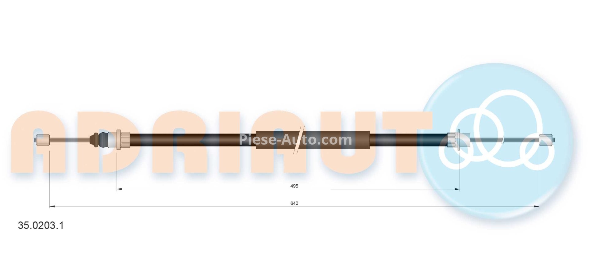 Cablu frână de mână ADRIAUTO, spate, dreapta (640mm /495mm) pentru: PEUGEOT 406 1.6-3.0 11.95-10.04