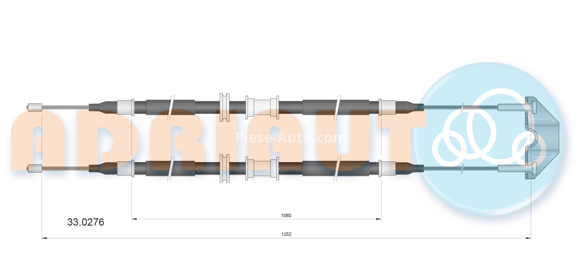 Cablu frână de mână ADRIAUTO, spate, dreapta / stânga (1250mm /1060mm /1252mm /1060mm) pentru: OPEL ASTRA G, ASTRA G/KOMBI 1.2-2.0D 02.98-05.05