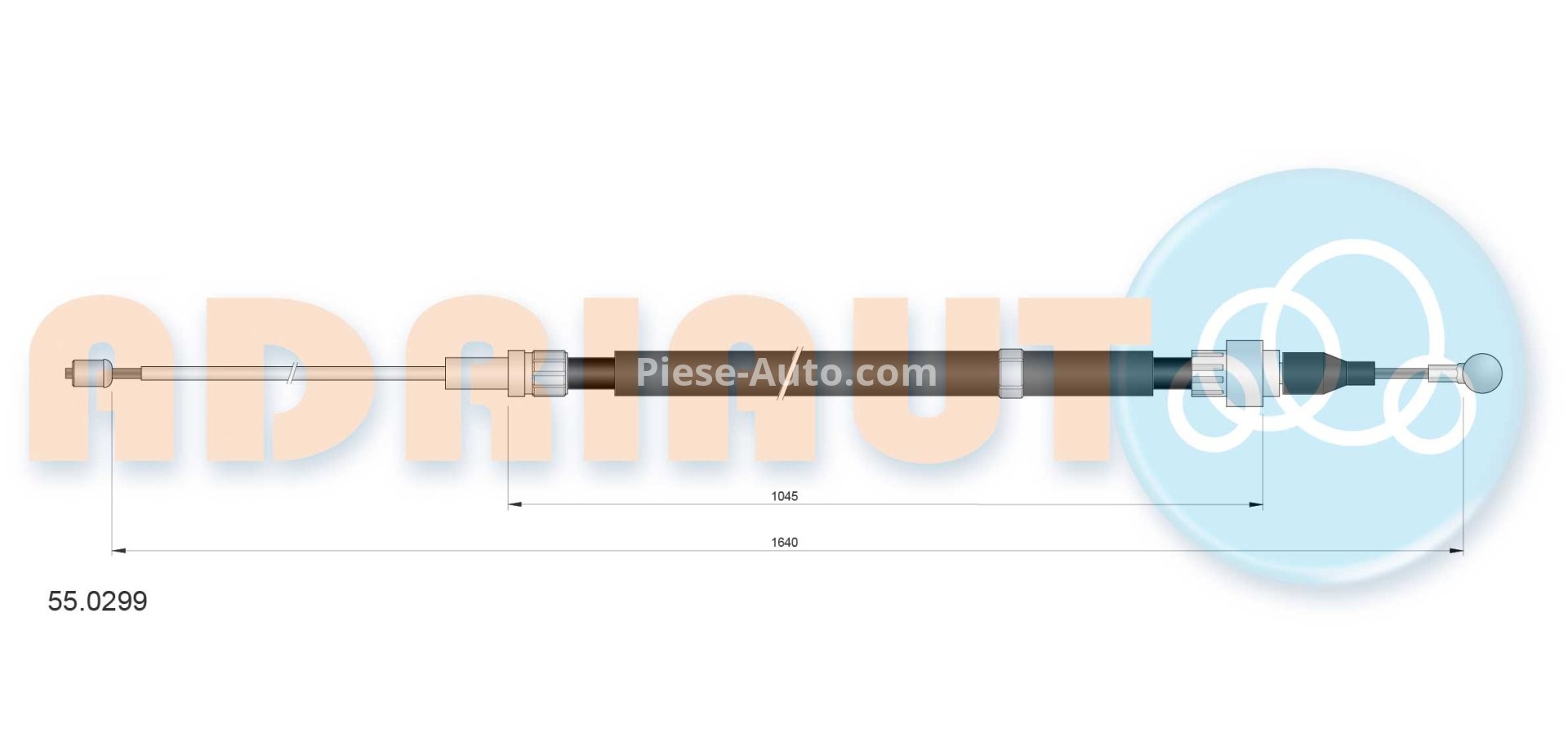 Cablu frână de mână ADRIAUTO, spate, dreapta / stânga (1640mm /1045mm) pentru: SEAT CORDOBA, IBIZA III; SKODA FABIA I, FABIA II; VW POLO, POLO IV 1.0-2.0 08.99-12.14