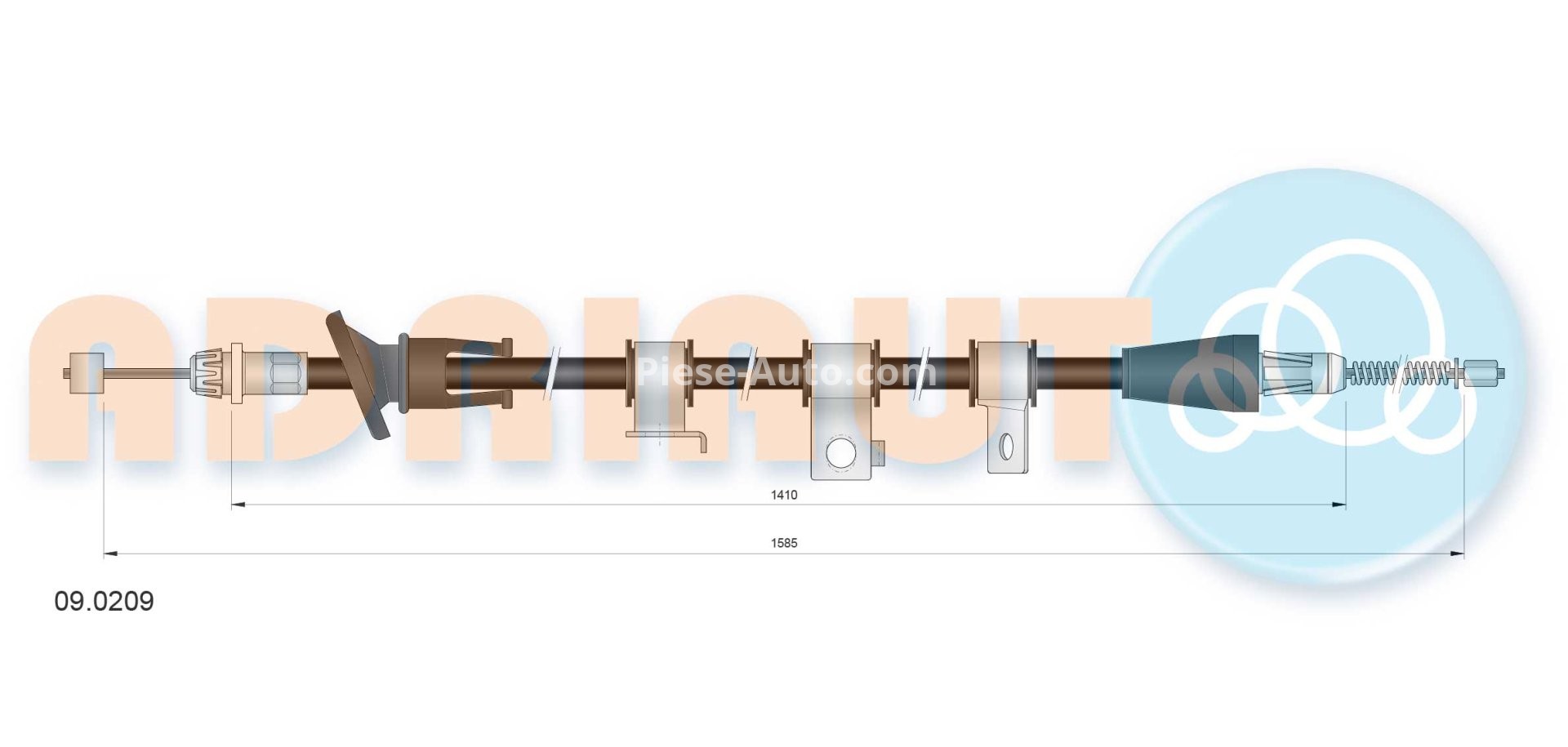 Cablu frână de mână ADRIAUTO, spate, stânga (1585mm /1390mm) pentru: KIA RIO I 1.3/1.5 08.00-02.05