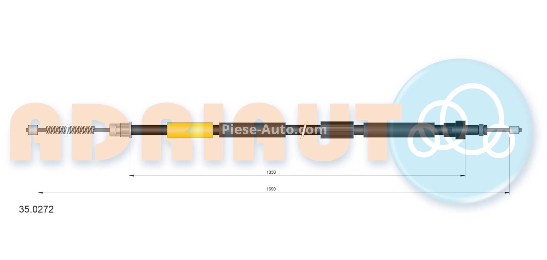 Cablu frână de mână ADRIAUTO, spate, stânga (1690mm /1330mm) pentru: PEUGEOT 306, 306/HATCHBACK 1.1-2.0D 04.93-04.02