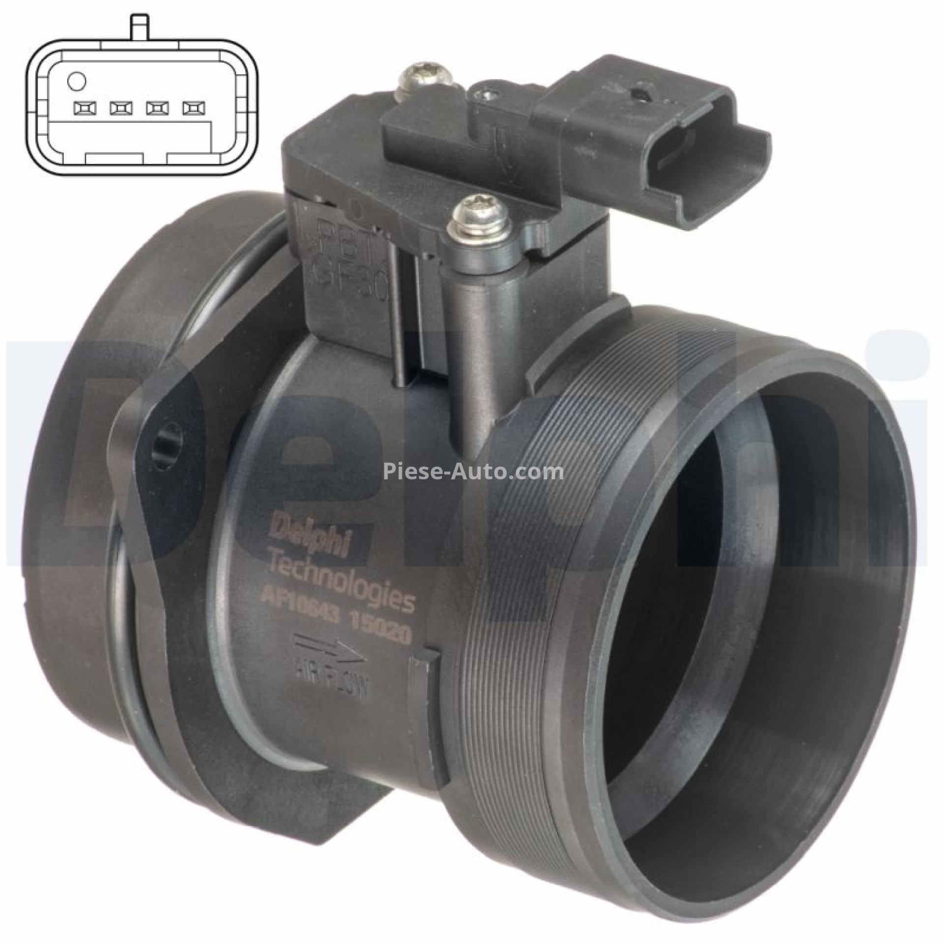 Debitmetru aer DELPHI (4 pini, modul) pentru: DS DS 4, DS 5; CITROEN C4 GRAND PICASSO II, C4 II, C4 PICASSO II, C4 SPACETOURER, C5 III, C8, DS4, DS5, GRAND C4 SPACETOURER 2.0D/2.0DH/2.2D 03.06-