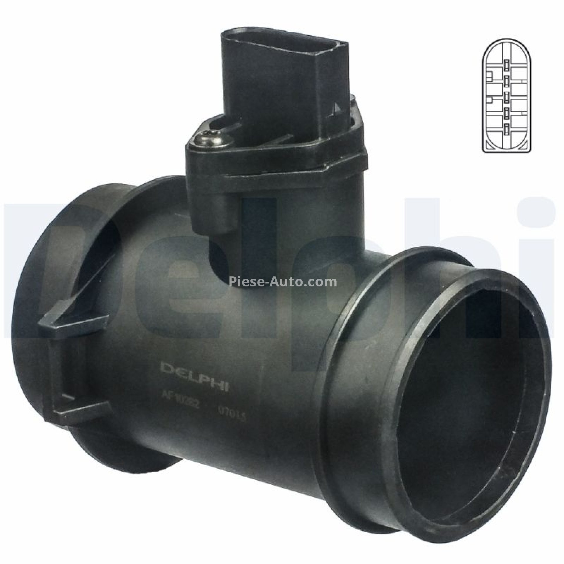 Debitmetru aer DELPHI (5 pini, modul) pentru: MERCEDES C T-MODEL (S202), C (W202), CLK (A208), CLK (C208), E T-MODEL (S210), E (W210), M (W163), SLK (R170), SPRINTER 2-T (B901, B902) 1.8-3.2 03.93-