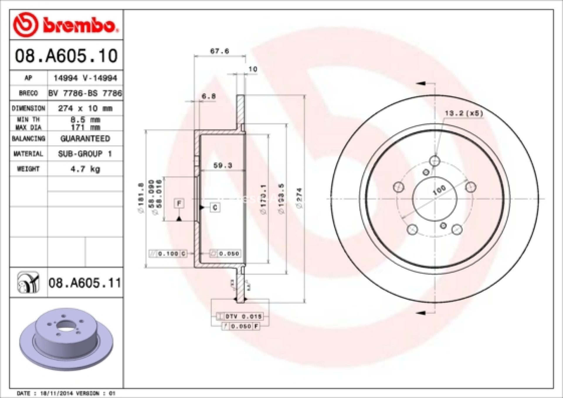 Detalii tehnice referitoare la discul de frână BREMBO :