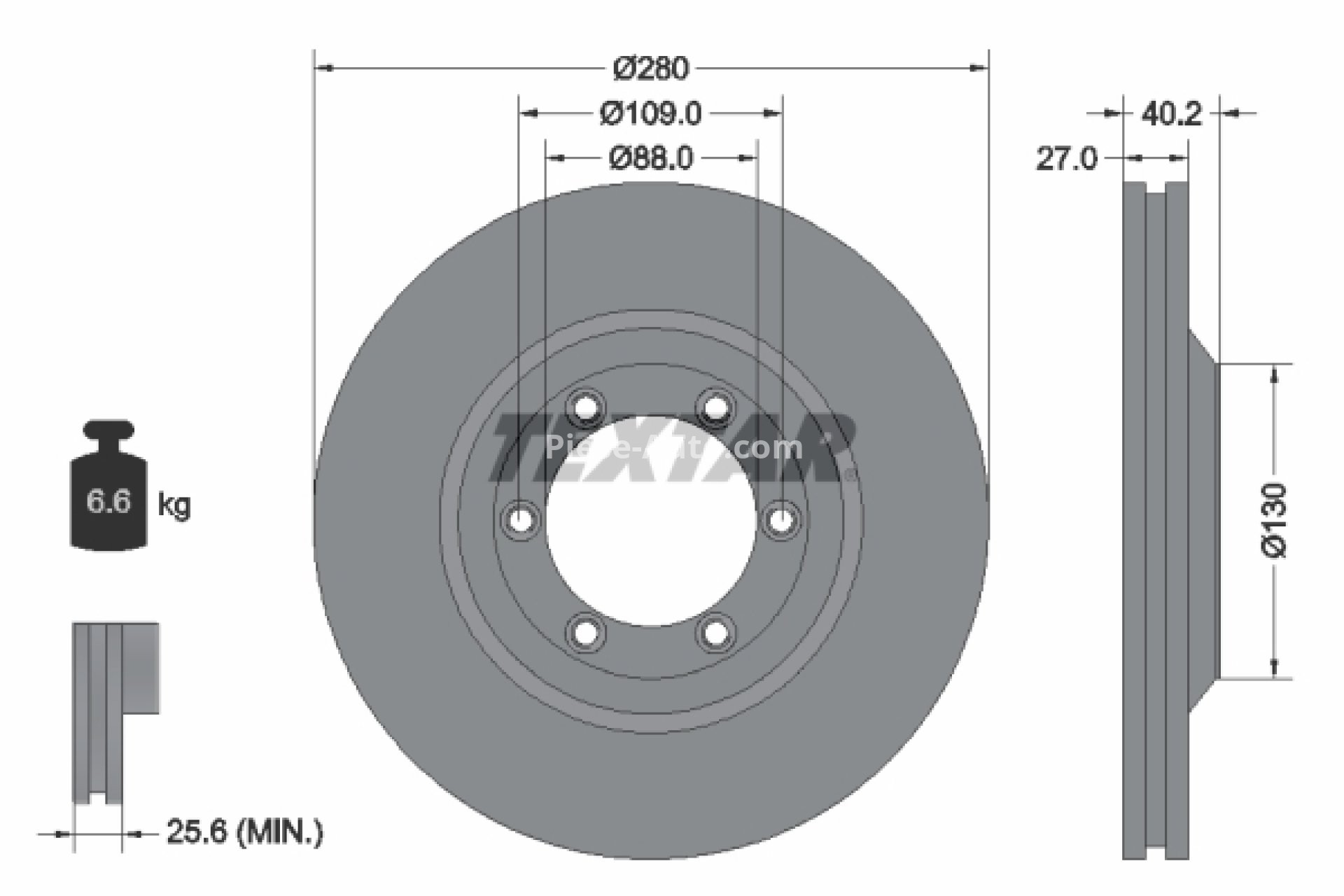 Disc frână TEXTAR, față, pentru: ISUZU D-MAX I, D-MAX II 1.9D/2.5D/3.0D 05.02-