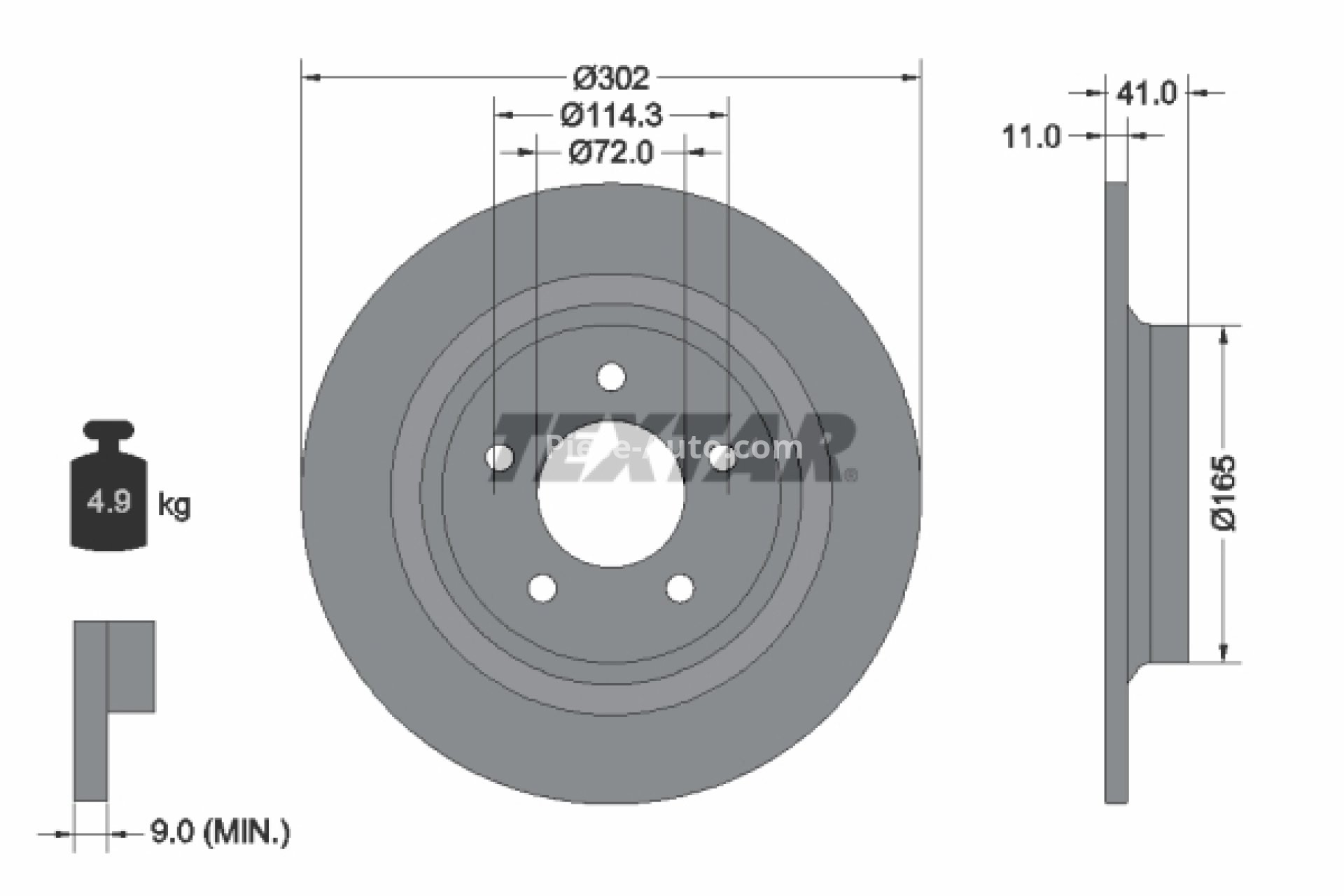 Disc frână TEXTAR, spate, pentru: MAZDA 5 1.6D-2.3 02.05-