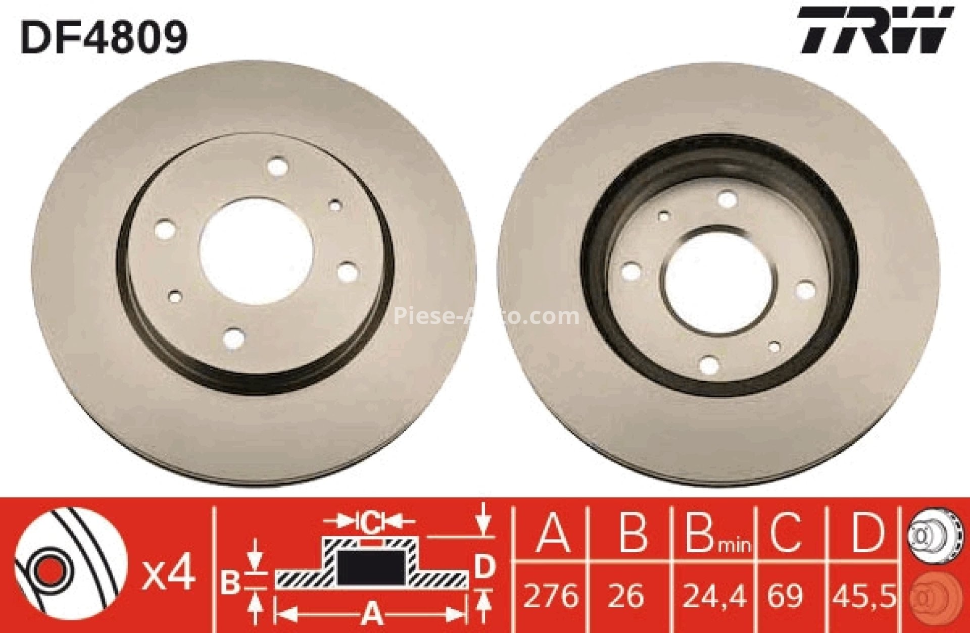 45.5 mmNumăr găuri fixare disc frână:
