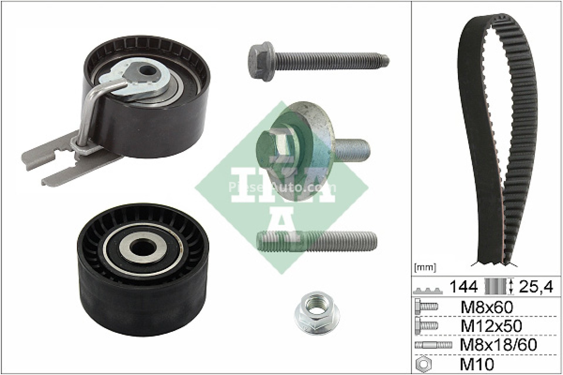 Kit distribuție INA (curea + role) pentru: CITROEN C1, C2, C2 ENTERPRISE, C3 I, C3 II, C3 PLURIEL, NEMO, NEMO/MINIVAN, XSARA; FORD FIESTA, FIESTA V, FIESTA VI, FUSION; MAZDA 2 1.4D 09.01-
