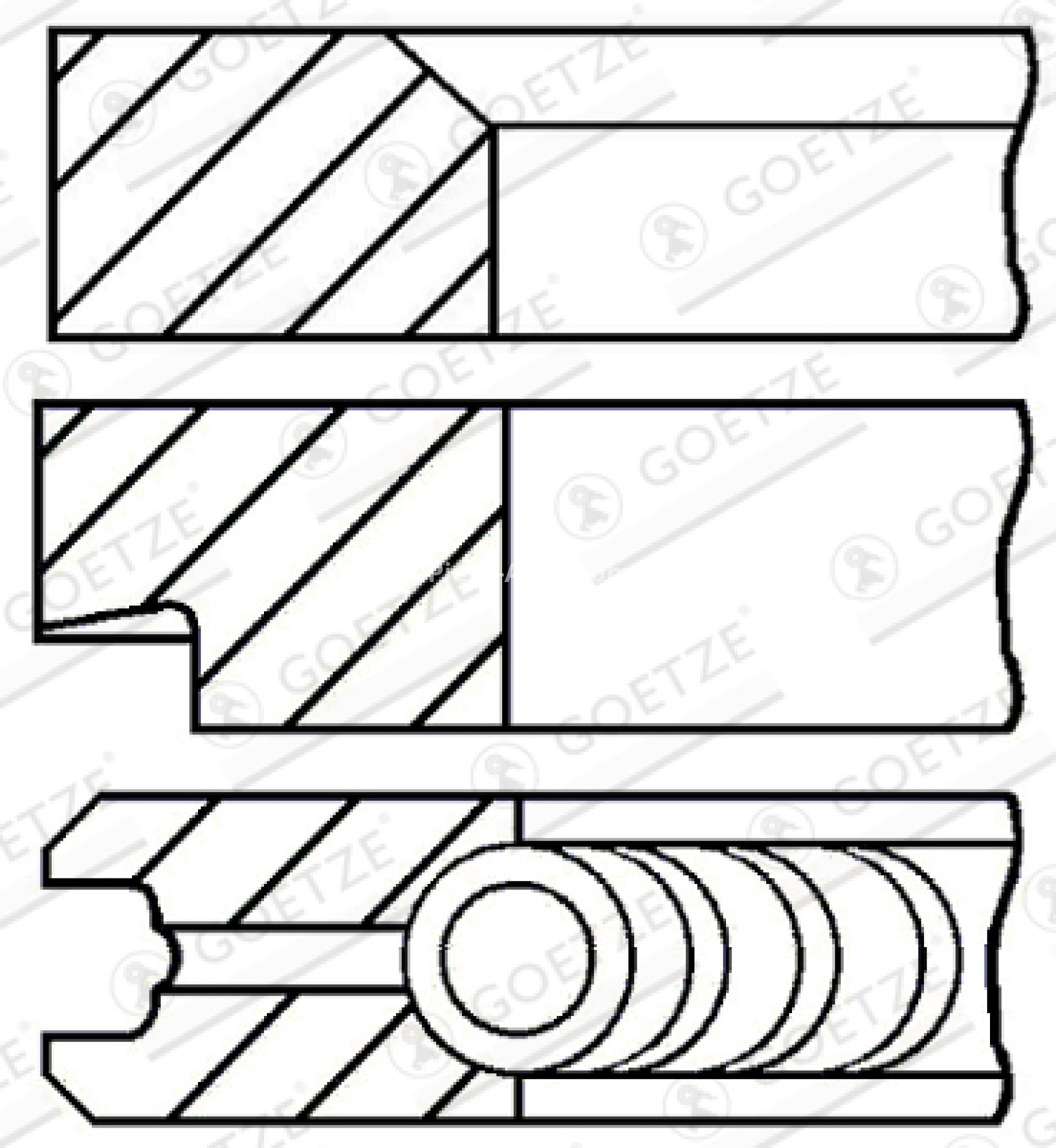 Segmenți piston GOETZE , pentru : MERCEDES 123 T-MODEL (S123), 123 (W123), /8 (W115), T1 (601), T1 (B601), T2/L, O 309, UNIMOG 2.4D/2.9D/3.0D 08.73-12.88 : MERCEDES