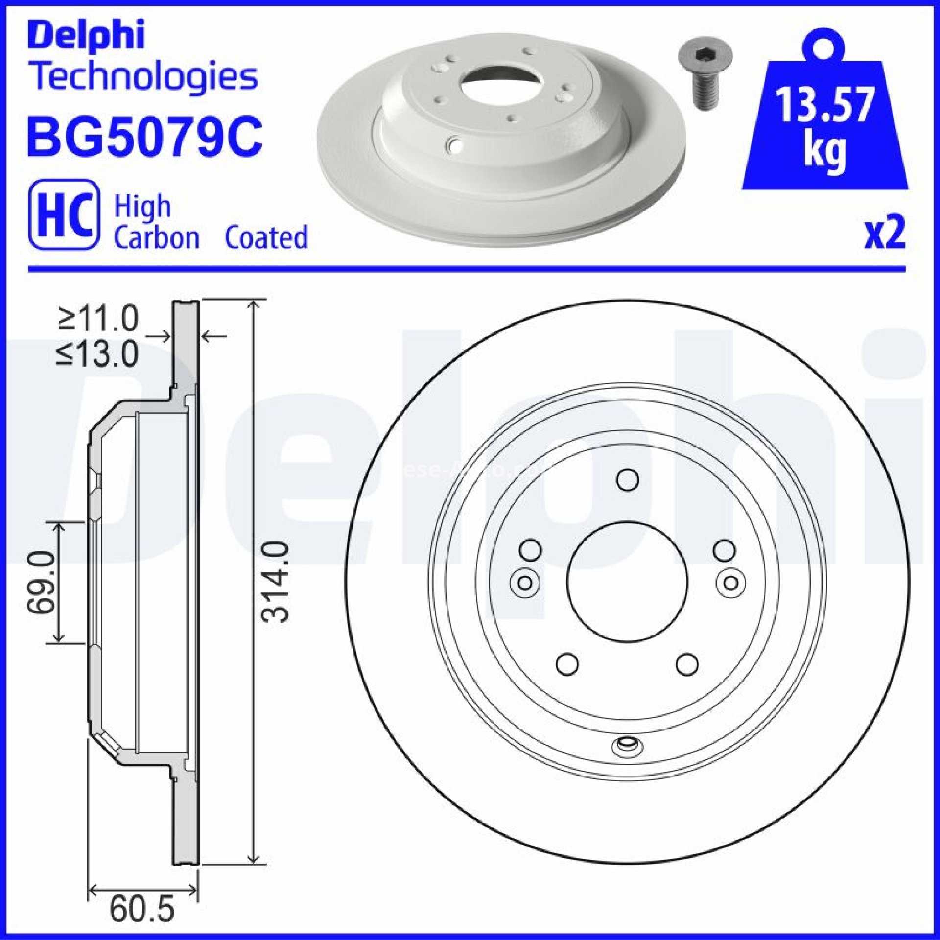 Set discuri frână DELPHI (2 buc.) spate, pentru: KIA STINGER 2.2D 06.17-