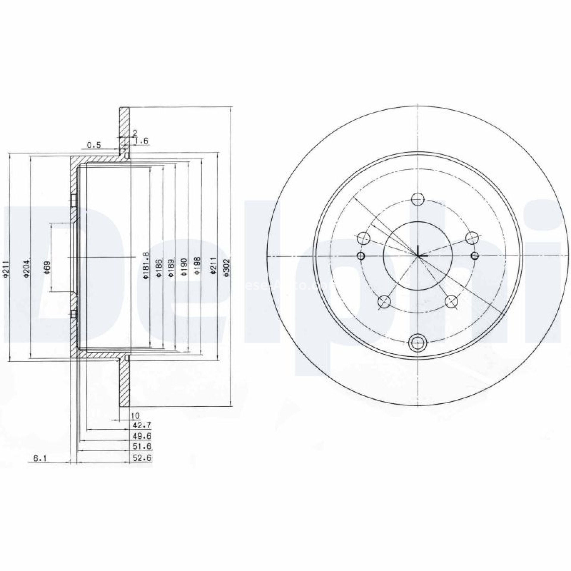 Set discuri frână DELPHI (2 buc.) spate, pentru: MITSUBISHI ENDEAVOR, GRANDIS 2.0D/2.4/3.8 01.03-12.11