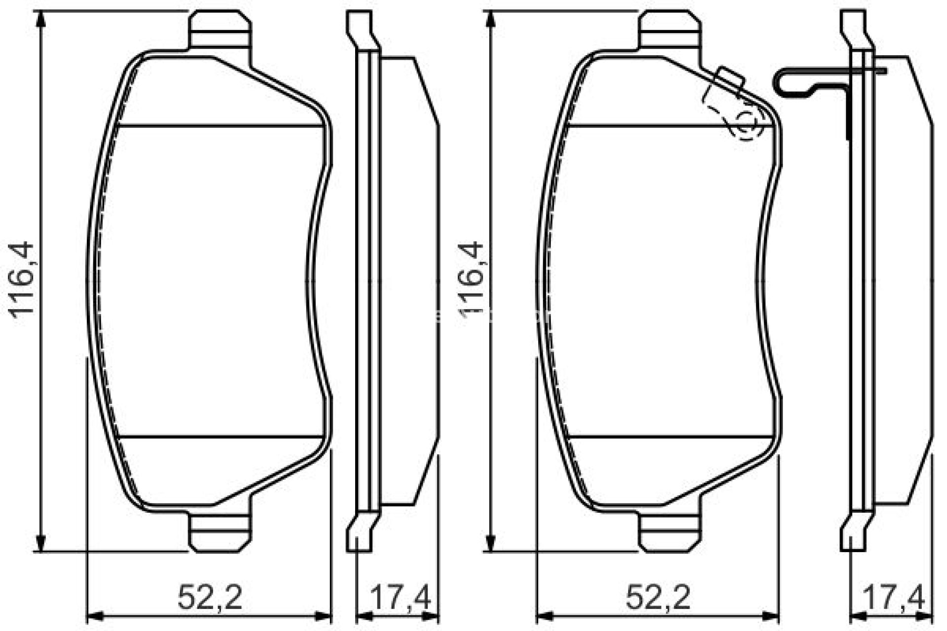 Detalii tehnice referitoare la plăcuțele de frână BOSCH :