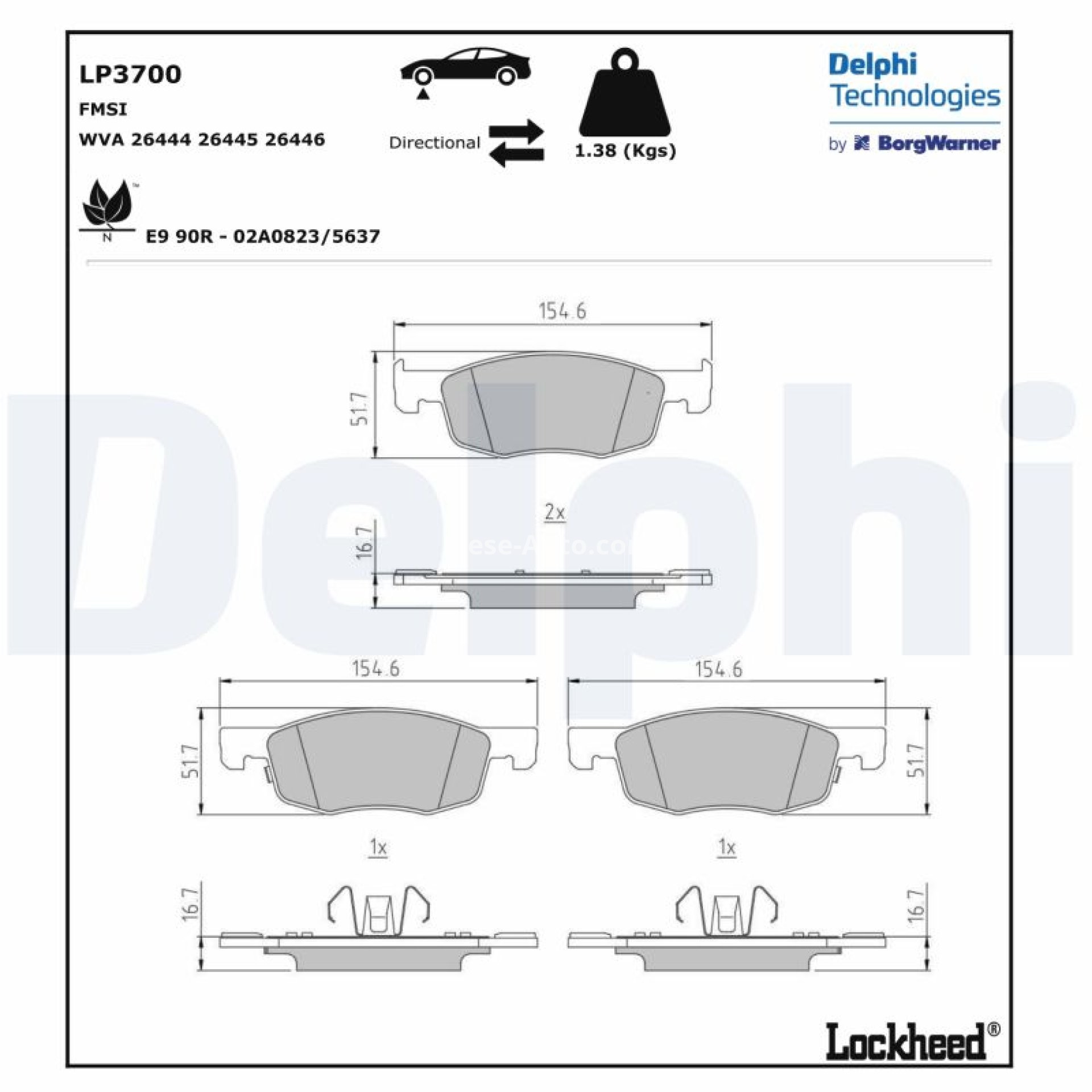 Detalii tehnice referitoare la plăcuțele de frână DELPHI :