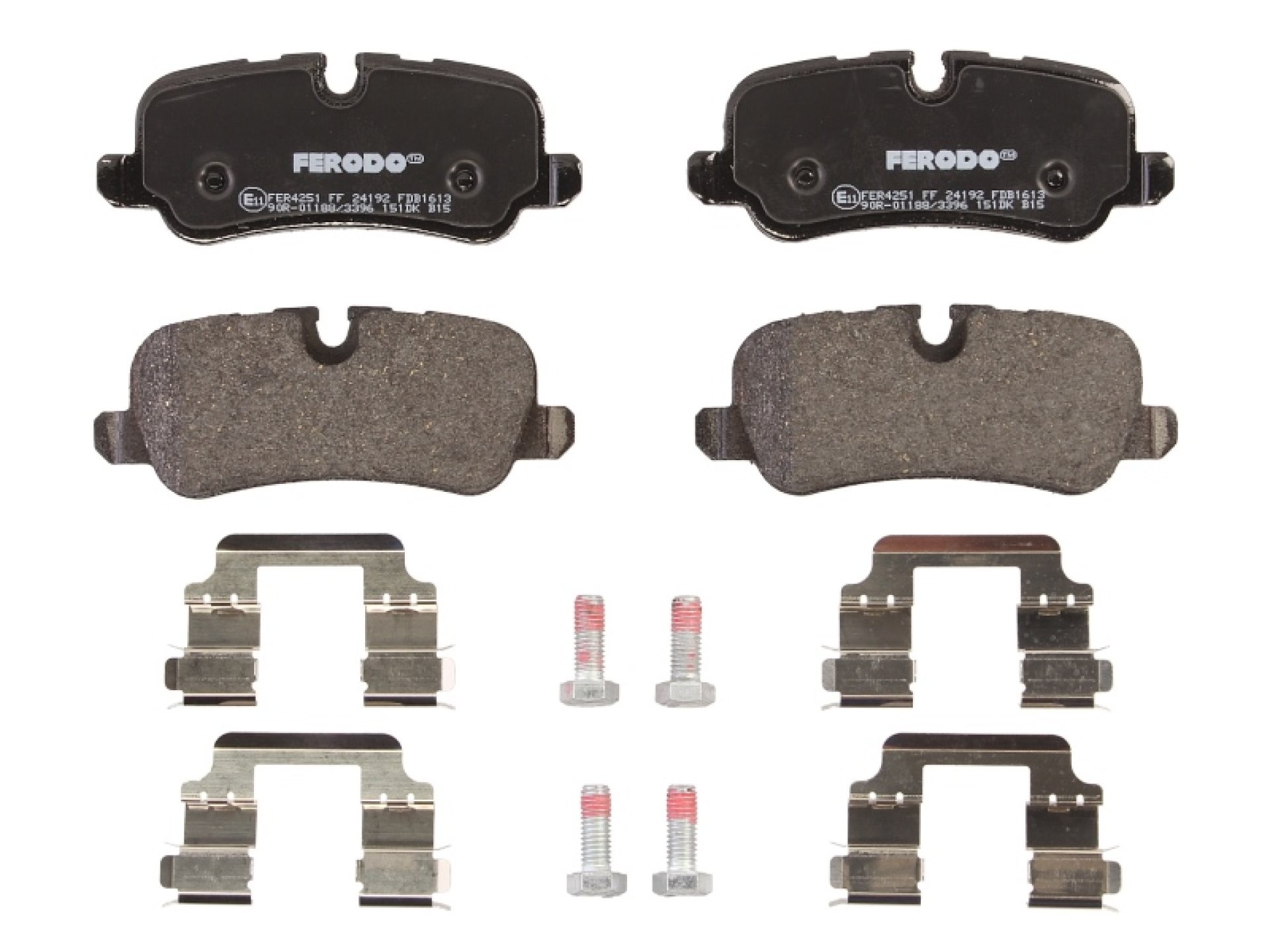 Set placuțe frână FERODO, spate, (cu piulita de actionare; cu suplimente; cu suruburi de ghidare), pentru: LAND ROVER DISCOVERY III, DISCOVERY IV 2.7D/4.0 07.04-12.18