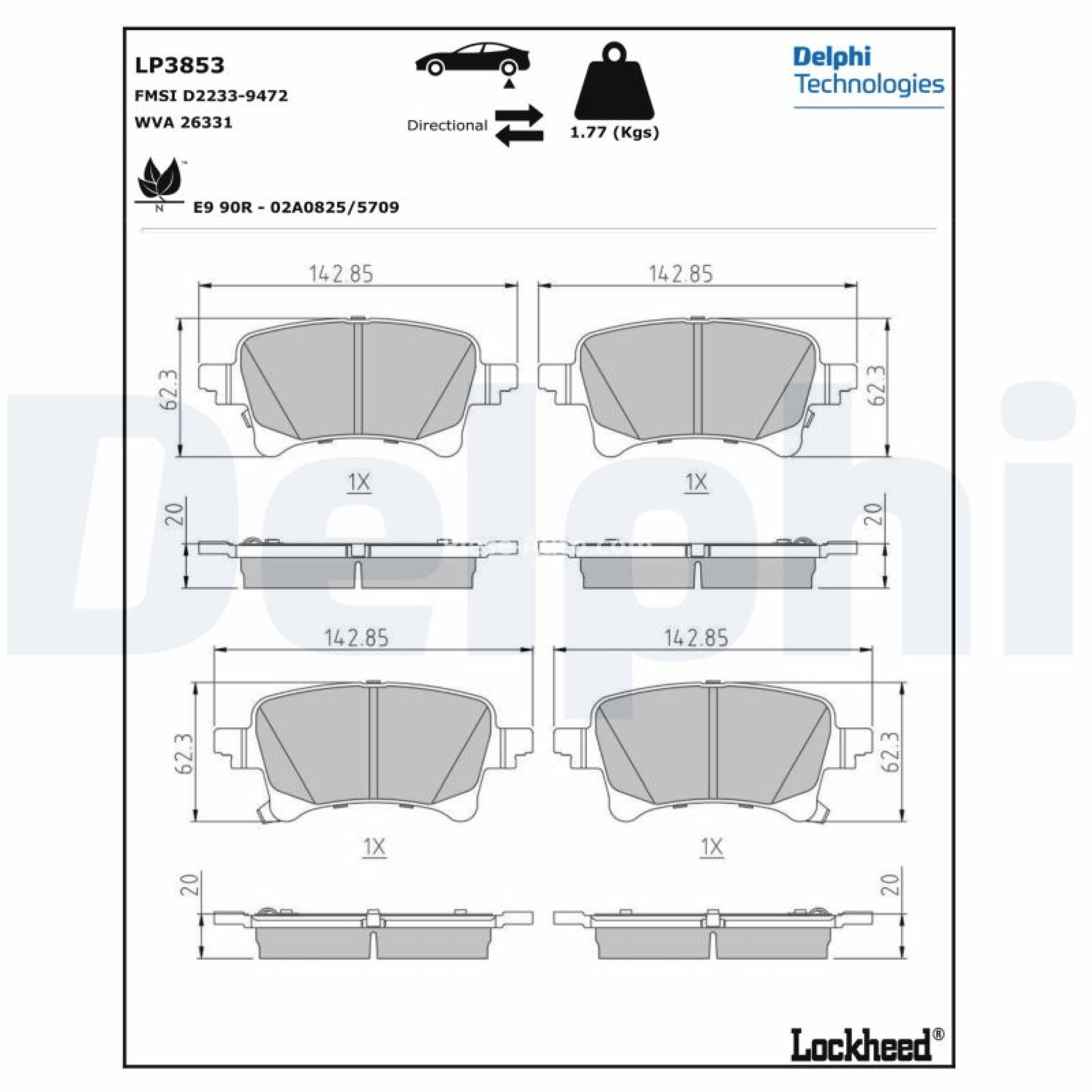 Detalii tehnice referitoare la plăcuțele de frână DELPHI :